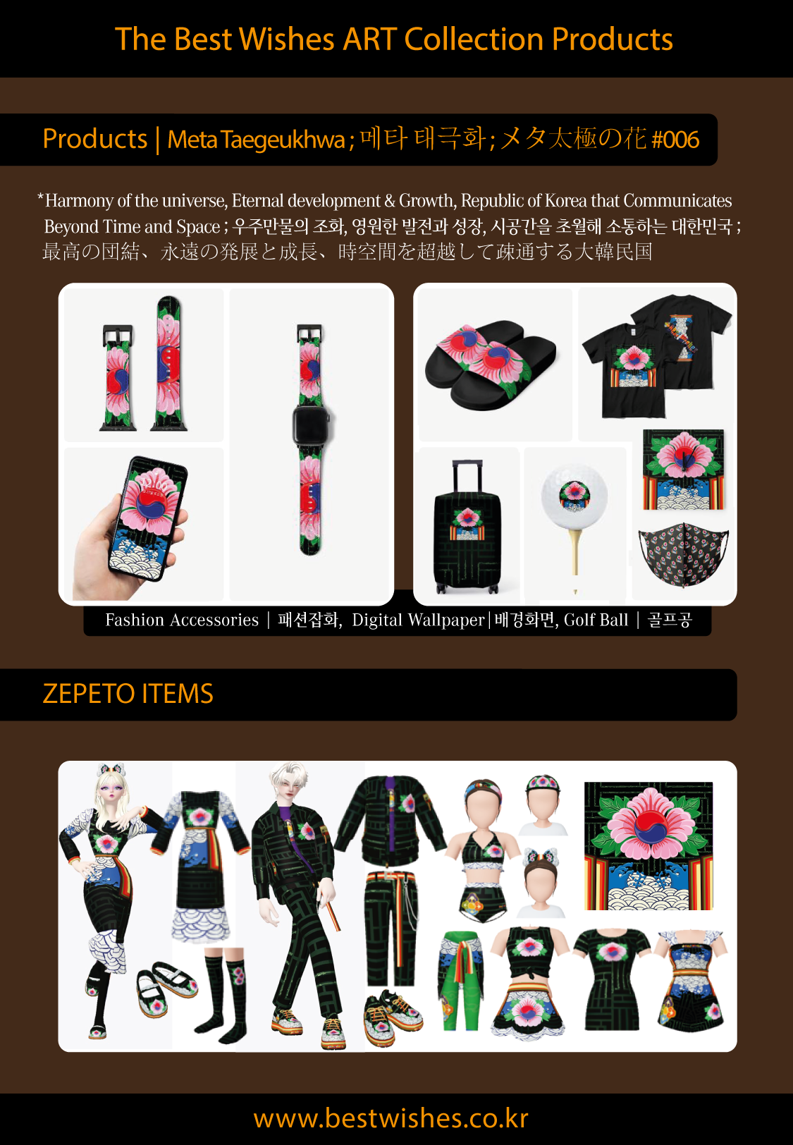 'Meta Taegeukhwa' is currently produced as a trendy real-life item along with 180 Korean pattern products, and can be shipped to 91 countries, so you can communicate with users around the world. : Best Wishes World) was also produced as an item in the platform, expressing harmony, development, and communication in the real world and the virtual world, wishing for the eternal well-being, peace, and prosperity of all things in the universe, and expressing the Republic of Korea moving into the future.